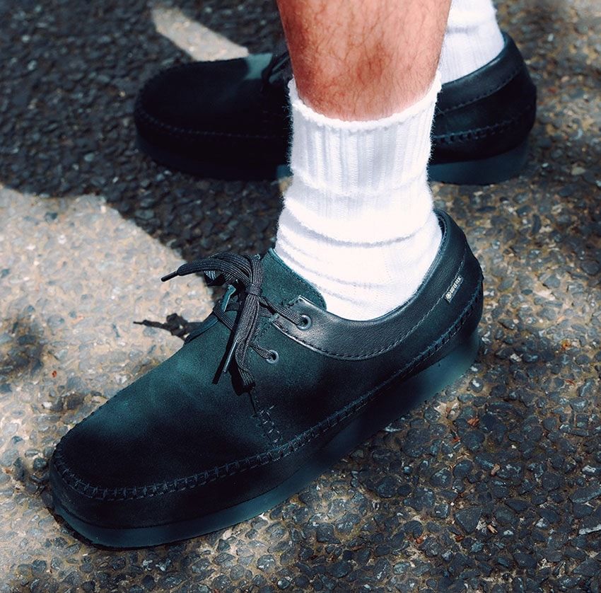 Tシャツ=フレッシュサービス ショーツ=エイトン 肩に掛けたシャツ=グラフペーパー 靴=クラークス オリジナルズ キャップ=キジマタカユキ サングラス=モスコット 腕時計=セイコー