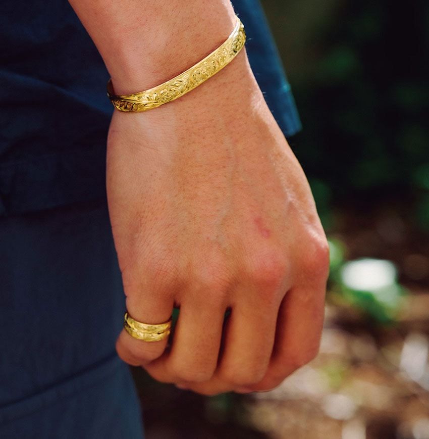アイウェア、腕時計、リング&バングルで利かせたゴールドも大人らしさの理由。