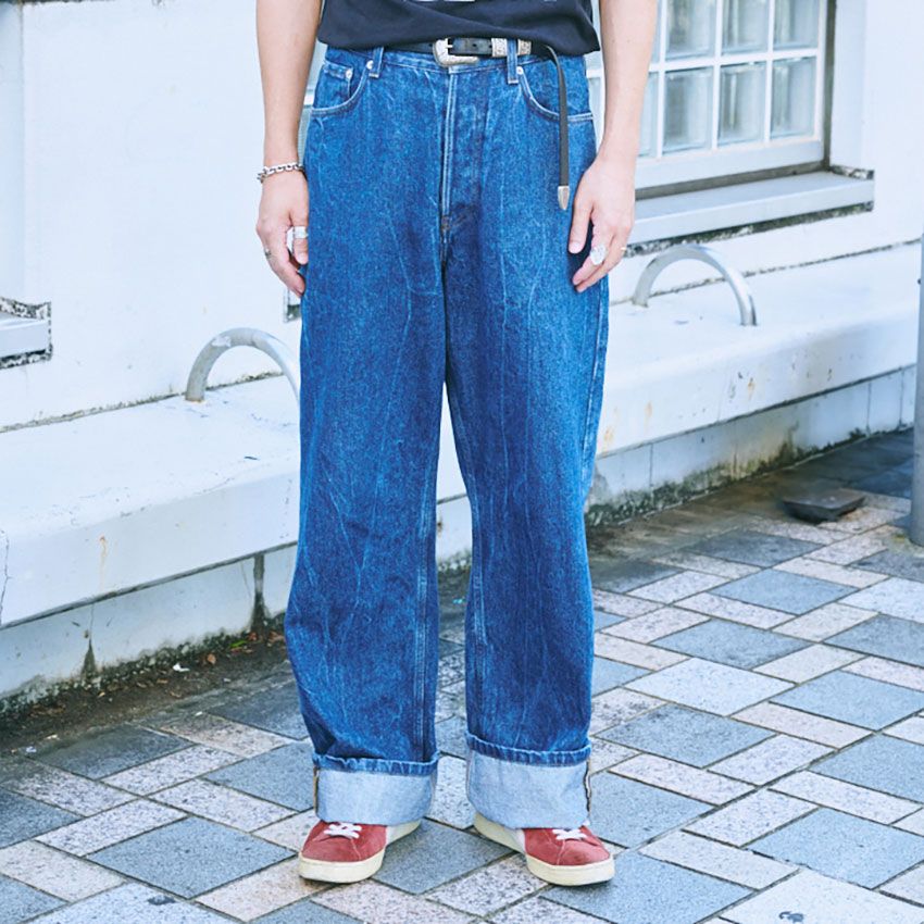 Tシャツ、帽子=ともに古着 デニム=ドリスヴァンノッテン シューズ=プーマ ベルト=ジェイアンドエムデヴィッドソン リング=ショウコニシ