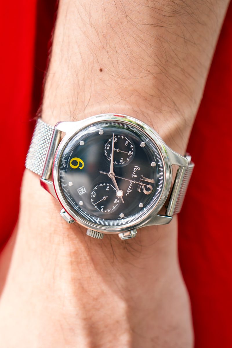 シャツ=グラフペーパー パンツ=不明 シューズ=ドクターマーチン 眼鏡=アイヴァン バッグ=エンダースキーマ 腕時計=ポールスミス