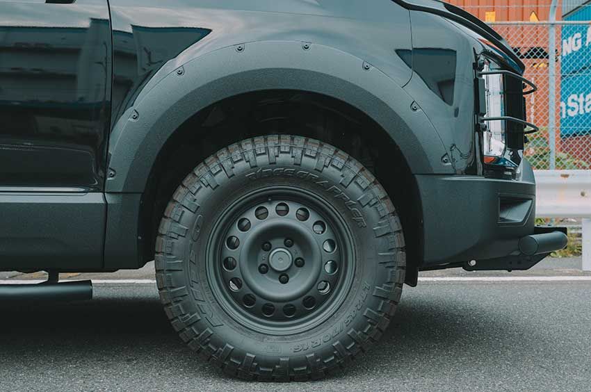 「これがデリカ?」と思わせる武骨さ。タイヤは「IRONホイール サファリBK」。