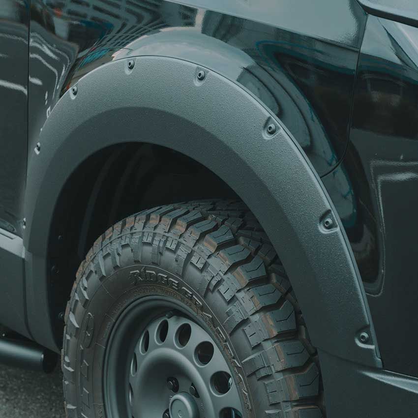 ラプター塗装でザラザラ感を演出したデリカのフェンダー。