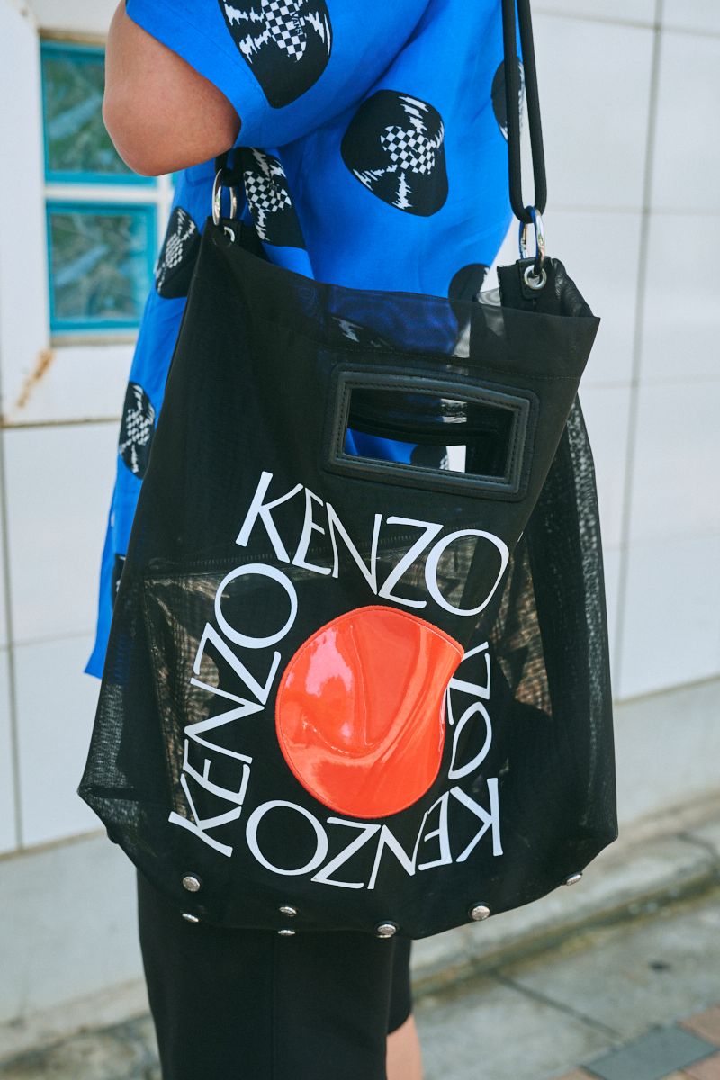 シャ= ワコマリア パンツ=ユニクロ シューズ=コンバース 眼鏡=アメリカンオプティカル バッグ=ケンゾー リング=フェンディ