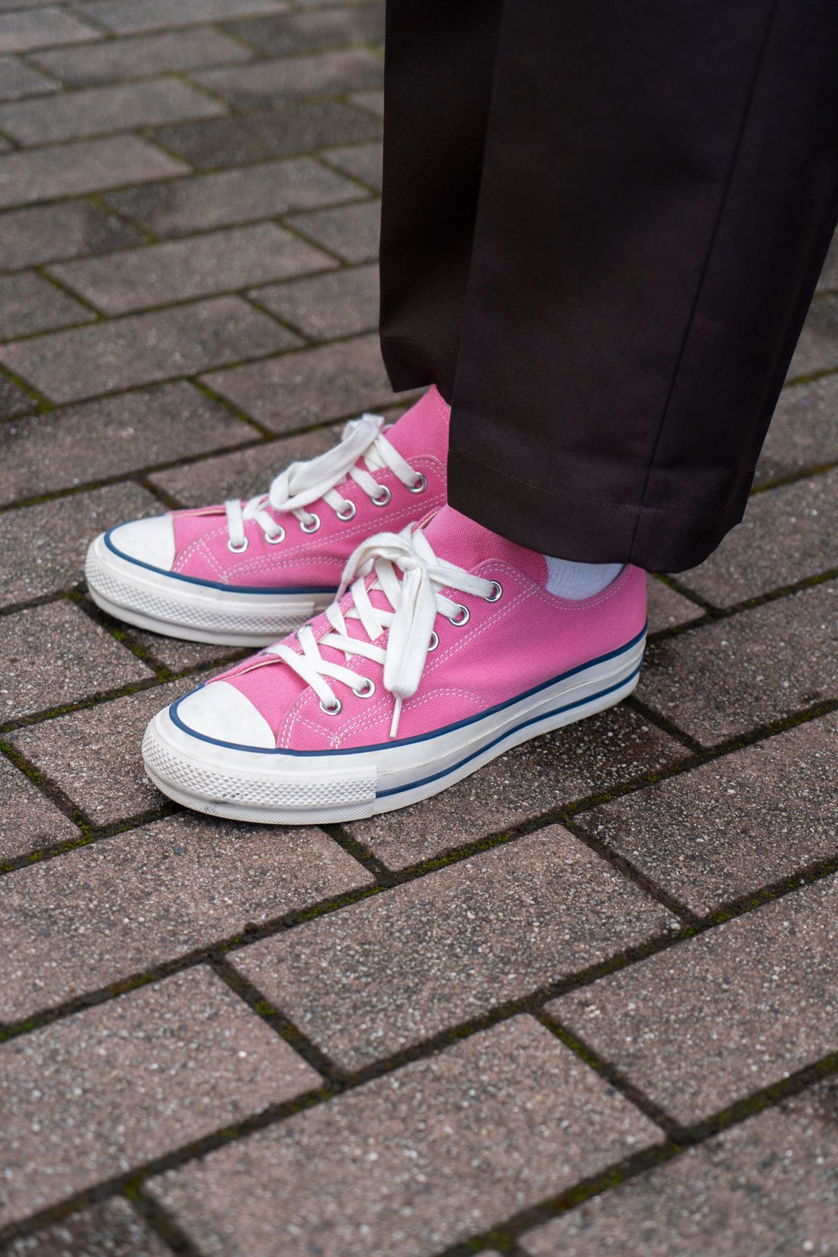 【写真8点】「夏のコンバースはピンク着用率高し?」の詳細を写真でチェック① ピンクの足元と柄キャップが、夏の開放感を手助け
