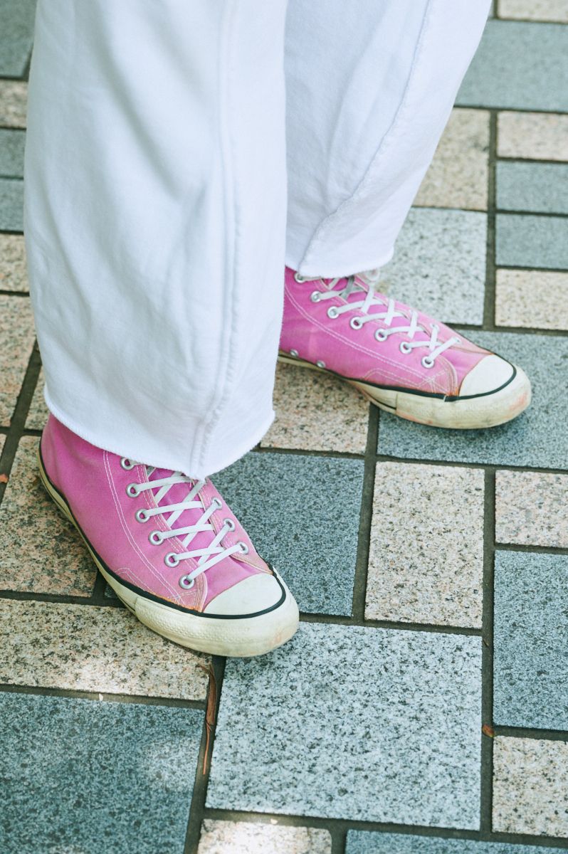 ▶︎豊田さんのスナップをすべて見る豊田さん(37歳)オールホワイトにピンポイントピンクを効かせた、フレッシュ極まりないサマーカジュアル。極端な白黒にありがちなストリックさは皆無で、余裕のある装いに。
