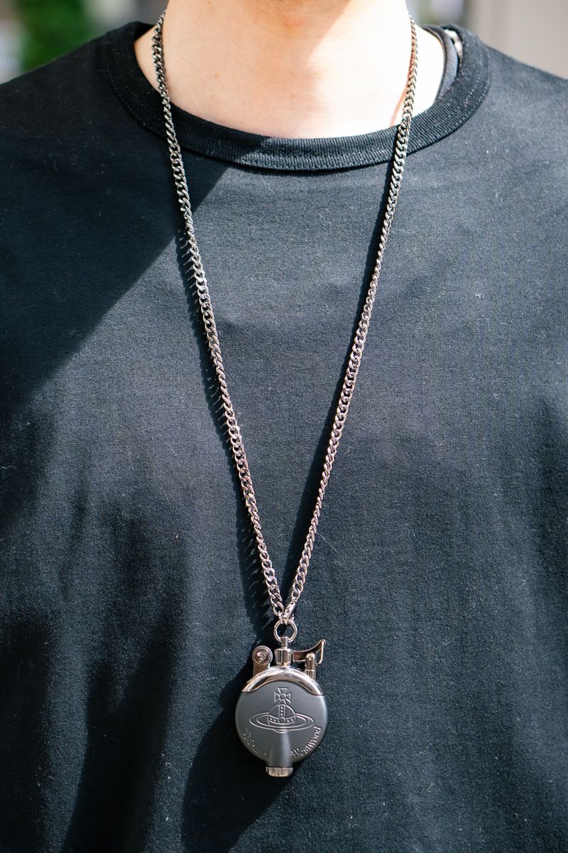 ▶︎佐々木さんのスナップをすべて見る佐々木光貴さん(39歳)長めのネックレスやレザーの手持ちバッグ、ブーツライクなスニーカーが目を引く。小物使いでオールブラックを個性的に見せた佐々木さん。もちろん全身のシルエットも特徴的だが、小物があると無いとでは大違い。サマーモードも細部へのこだわりが、モノを言うのだ。