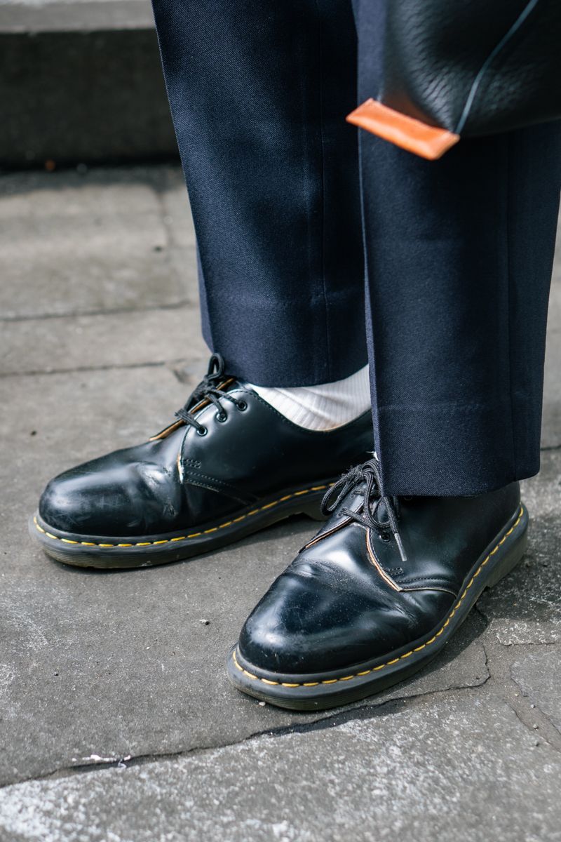 シャツ=グラフペーパー パンツ=不明 シューズ=ドクターマーチン 眼鏡=アイヴァン バッグ=エンダースキーマ 腕時計=ポールスミス