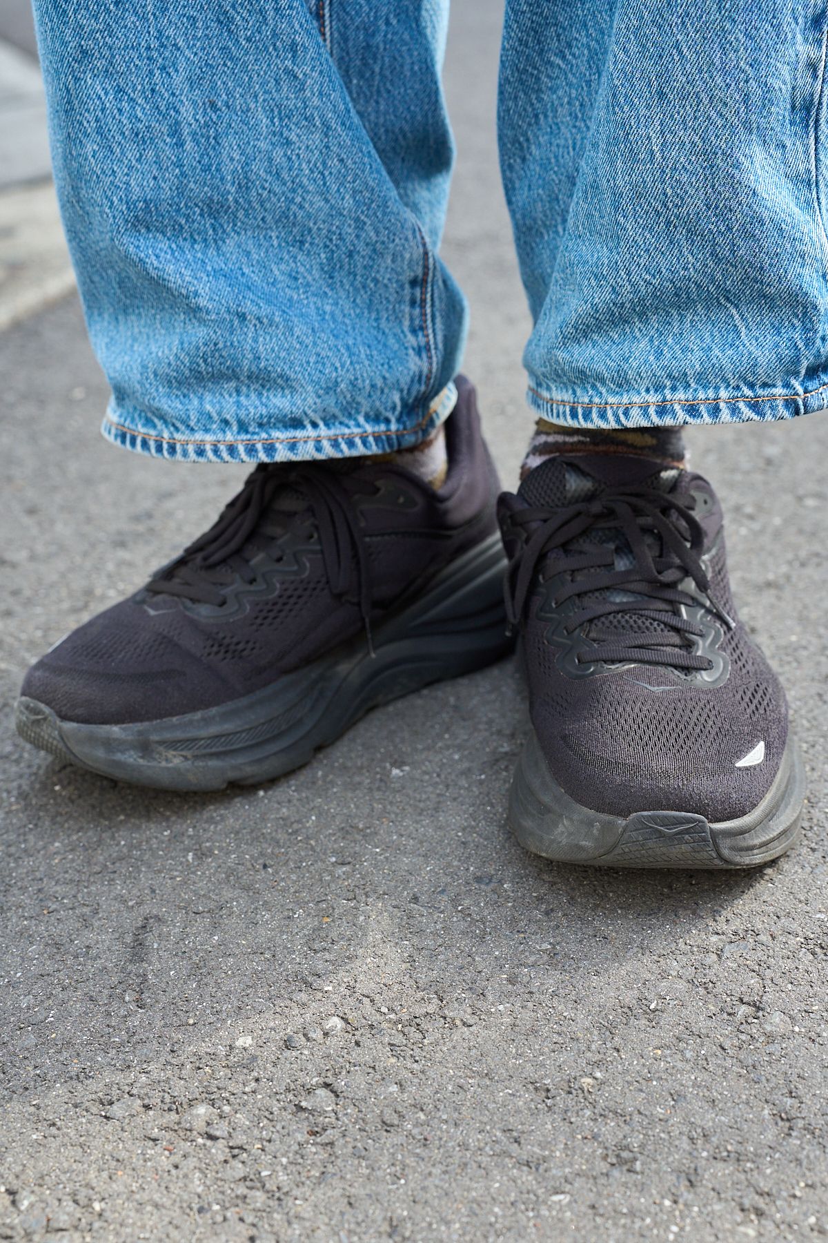 【写真7点】「ワイドパンツと好相性なホカ」の詳細を写真でチェック① デニムの重量感に負けない、オールブラックのホカ