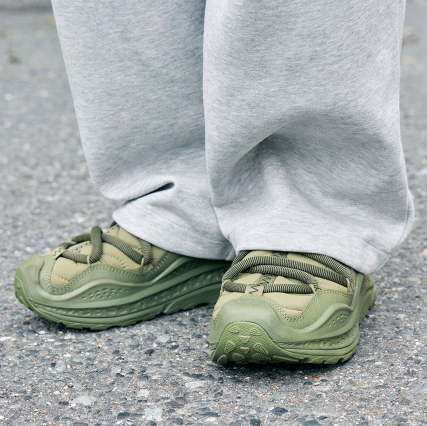 軽快さが重視される夏スタイルでワイドパンツをはくなら、バランスを取りながら抜け感を作るのもひとつのポイント。そんなときに頼れるのが、ボリューム感と機能性を兼ね備えた「ホカ」のシューズだ。