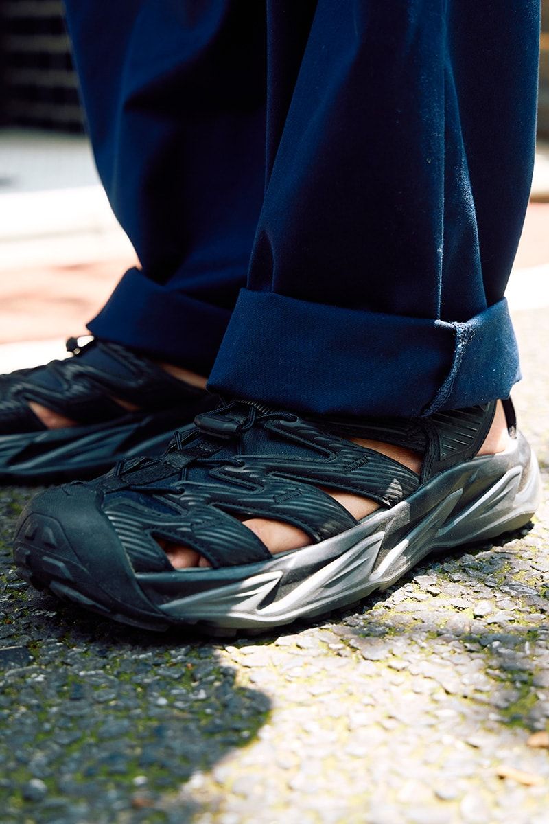 足元に選んだのは、ホカのサンダル型スニーカー「ホパラ」だ。軽快で涼しげ、それでいてソールの厚みでシルエットが崩れない。素足で履いても成立する“テックな抜け感”は、この季節だからこそ活かせるコーディネイトだ。