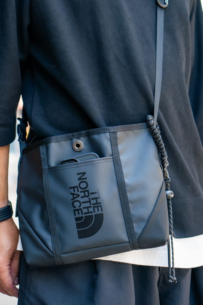 宮野さんのスナップをすべて見る宮野伸治さん(57歳)黒のロンTにドレープ感のあるパンツを合わせたモノトーンスタイル。そこに加えたのが、ザ・ノース・フェイスのサコッシュだ。