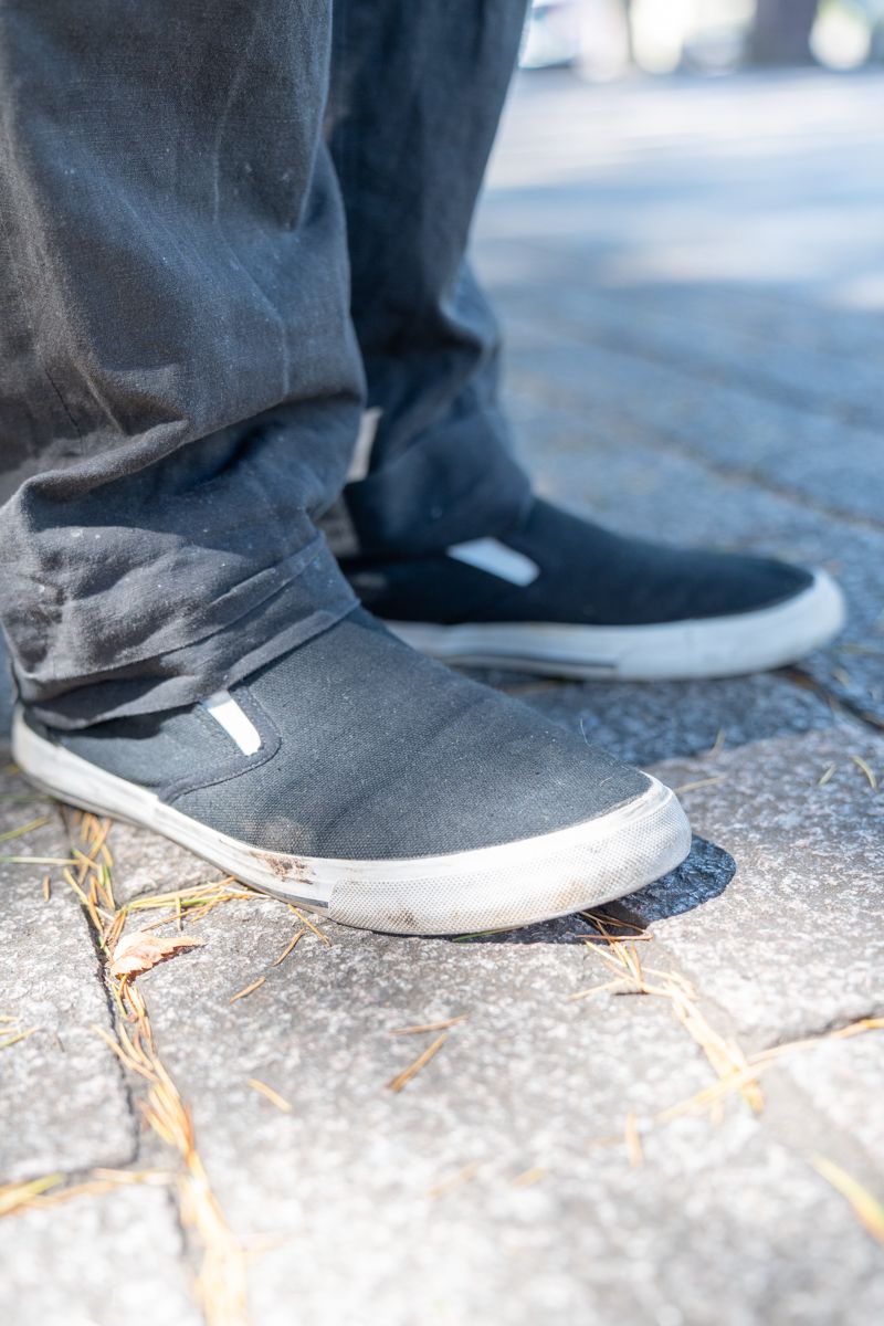 ▶︎阿部さんのスナップをすべて見る阿部直樹さん(50歳)白のノーカラーシャツで爽やかな印象をつくった阿部さん。合わせたのは、涼しげな素材感と絶妙な中間色が特徴の「マーガレット・ハウエル」のパンツだ。足元のスリッポンは、履き込むことで生まれた風合いがいい感じ。