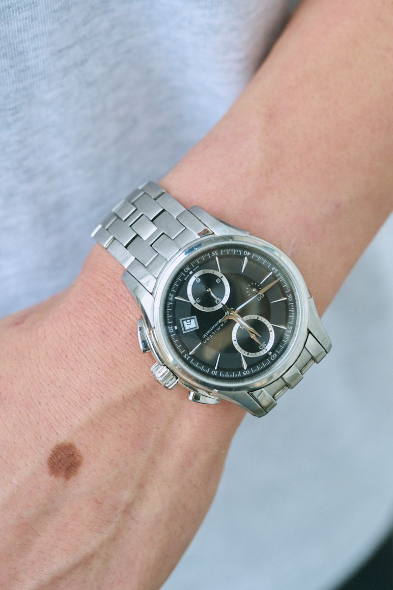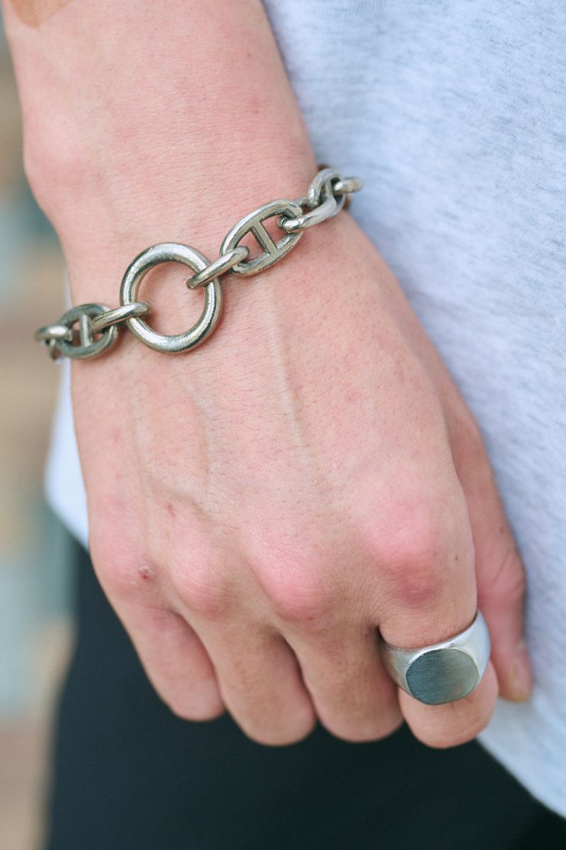 Tシャツ=ナイス パンツ=エブリワン シューズ=ニューバランス 帽子=カウラム 腕時計=ハミルトン ネックレス=トムウッド ブレスレット=マイン リング=ショロジュエリー