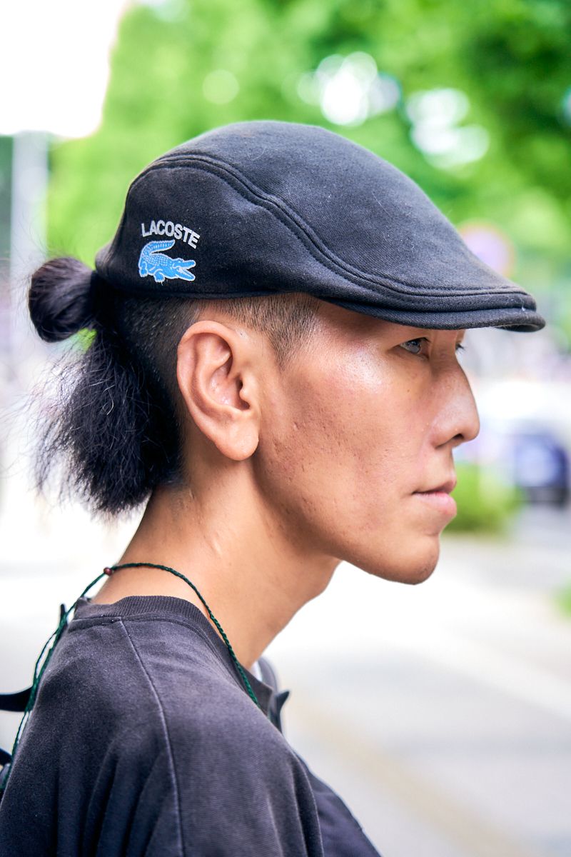 足元はナイキ、バッグはコロンビアとアクティブさを纏いつつ、「ラコステ」のハンチングでほんのり上品なムードを演出。細部に気の利いた小物使いがお見事!