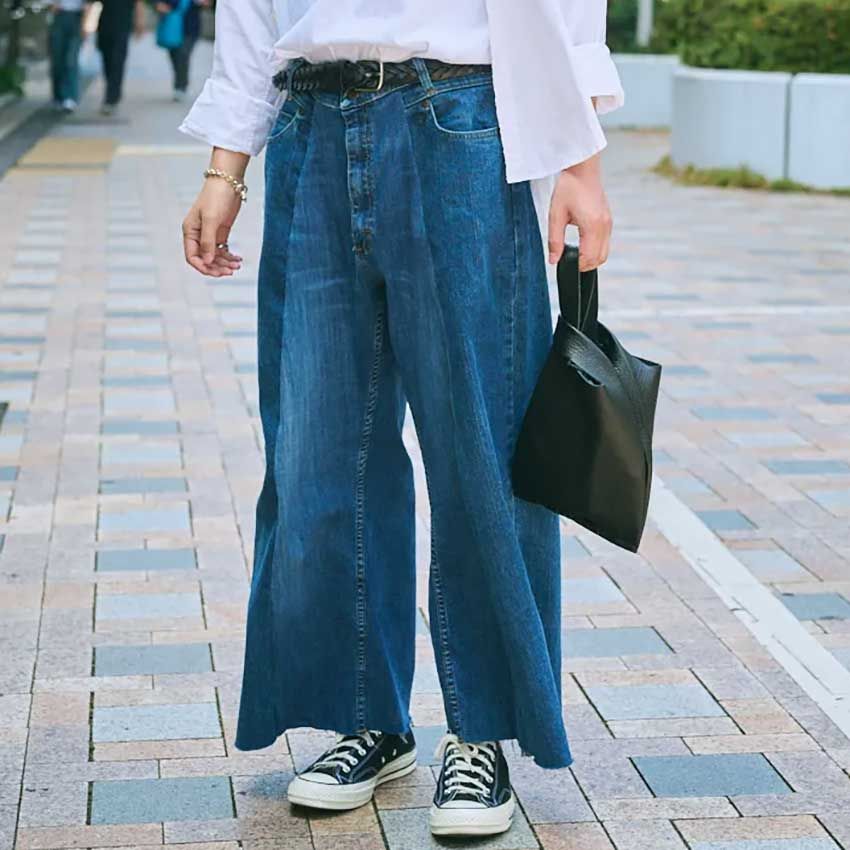 ▶西村さんのスナップをすべて見る西村佳晃さん(34歳)超ごん太のシルエットながら、無性に爽やか。風に揺られるライトオンスのデニム生地と涼しげなインディゴカラーが、白で揃えたトップスにさらっと寄り添う。