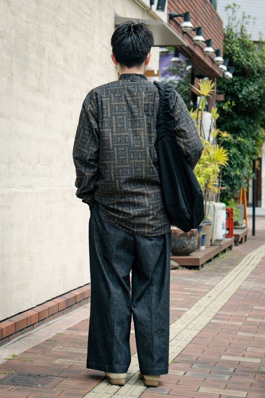 ▶姉歯さんのスナップをすべて見る姉歯健太朗さん(30歳)気鋭のクリエイター、ニコラ・ユタナン・シャルモ氏が手掛けるスーパーワイドストレートデニムが主役。ソリッドでもソフトな不思議ビジュアルが、ダークトーンの装いに映える。