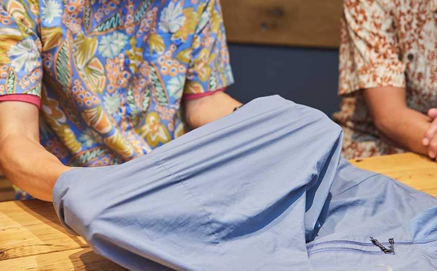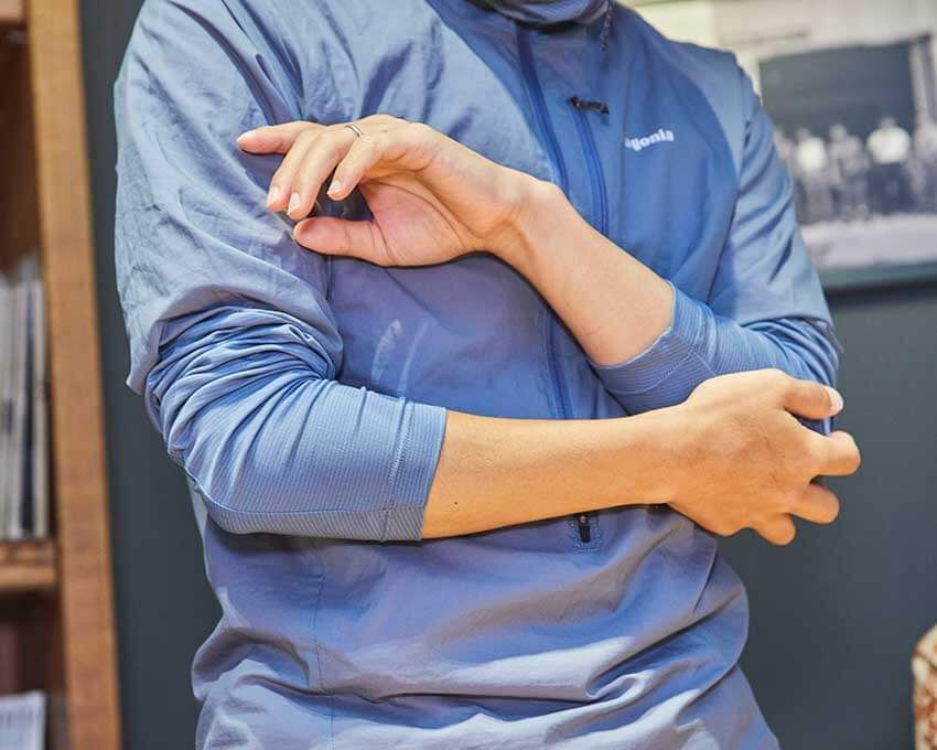 石渡 そうですね。熱気を外に出してくれるので蒸れないし、汗で肌にぺたっとくっつくこともない。じめっとする梅雨の時期にも快適で、それでいて寒い日は温かい。乾きも早くて、とにかく優秀です。