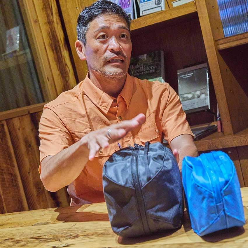 石渡 そして、次は大人気のブラックホール・キューブ。パタゴニアスタッフなら、必ず1つ、2つは持ってるんじゃないかな。僕は紫の6Lと白の3Lを愛用していて、6Lに関しては9年前に買って以来、ずっと使い続けています。