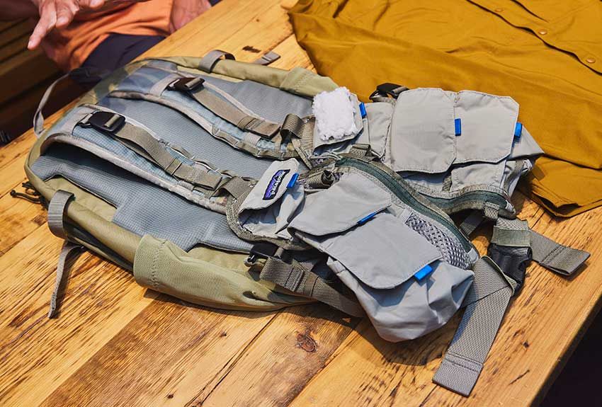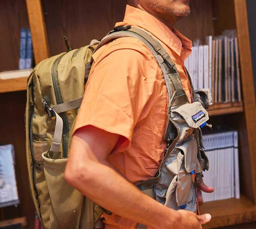 石井さん 「ステルス・コンバーティブル・ベスト」と「ステルス・バックパック」、別々の製品を合体させたバックパックなんです。こうすることでフライフィッシングに必要なすべてのギアを装着できます。