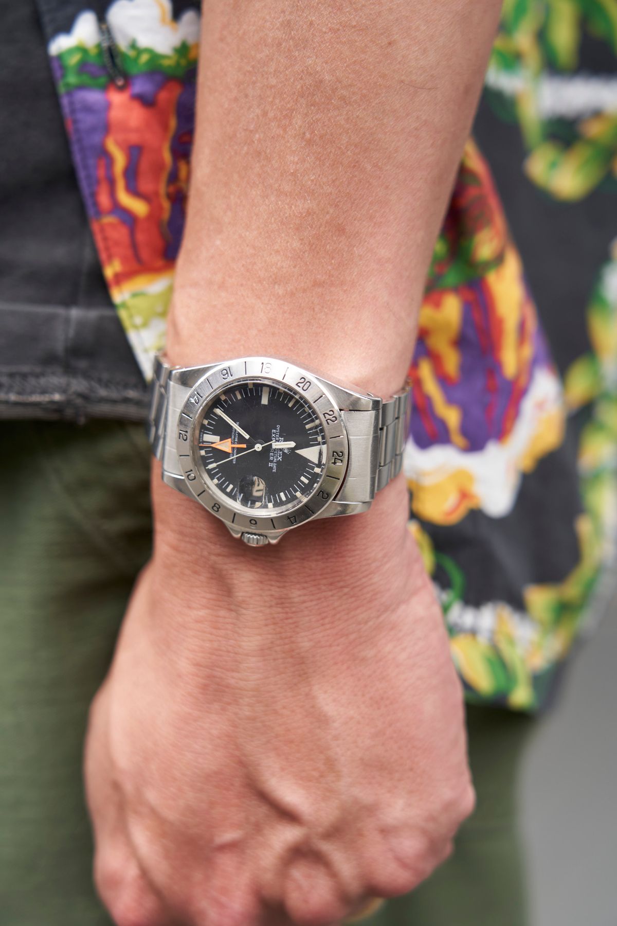 こちらは現行まで続く人気モデル「エクスプローラーⅡ」。その記念すべきファーストモデル、Ref.1655なのである。 Ref.1655自体がかなり稀少なのだが、この個体はそのなかでも生産数が少ない初期タイプ、“マーク1”ダイヤルを採用した激レア仕様!