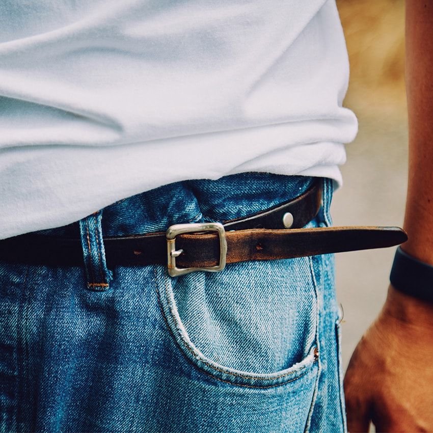「ウエスト回りにゆとりがある」という“66”は、ワコマリアの細ベルトで締め上げるのが流儀。「バックルをあえてずらす」というテクをさりげなく披露する。