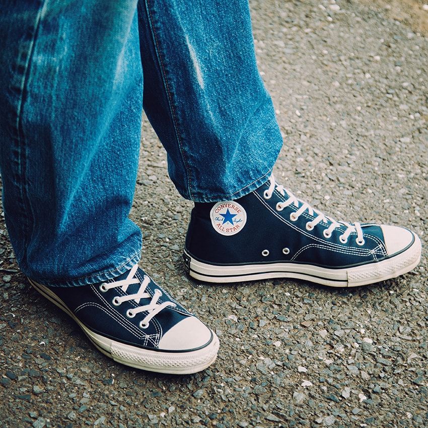黒と見せかけて濃紺という定番コンバースの遊び方