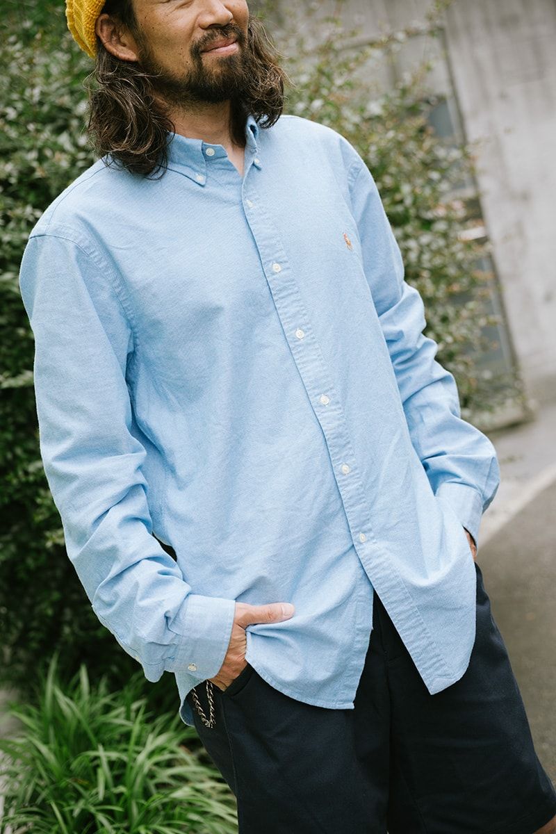 ▶︎沖本さんのスナップをすべて見る沖本泰平さん(45歳)「ポロ ラルフ ローレン」のオックスフォードシャツを主役に抜擢。ボトムスはレッドキャップの黒ショーツでラフなスタイルを構築。足元は履き込まれたコンバースで、こなれ感たっぷりだ。
