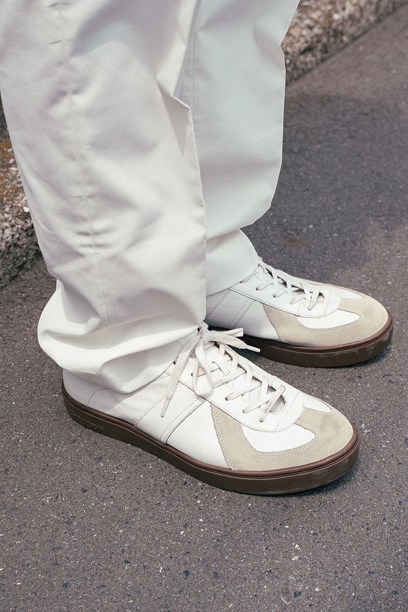しかも、“青”アイテム以外は基本的にすべてを”白”で徹底。ただし、スニーカーのソール、懐に忍ばせたミニバッグ、アイウェアでこっそり“茶”を織り交ぜ、コーデに奥行きも持たせる。さすが大先輩。まだまだ敵いません!