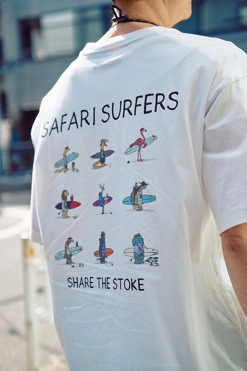さまざまな動物たちが思い思いのボードを抱え、波に臨む。「SHARE THE STOKE」とは、喜びを分かち合うという意味のスラング。みんな違って、みんないい。