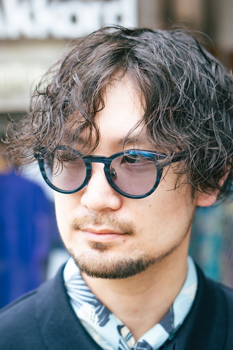 ポロシャツ=コムアーチ パンツ=エゴトリッピング シューズ=アトリエポム 眼鏡=ドクターレイ
