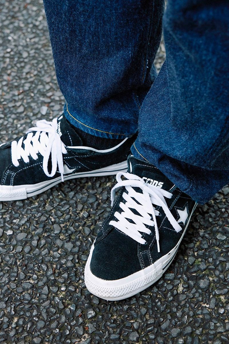 シャツ、デニム=ともにワンピースオブロック Tシャツ、帽子=ともにステューシー スニーカー=コンバース 腕時計=オメガ バッグ=無印良品
