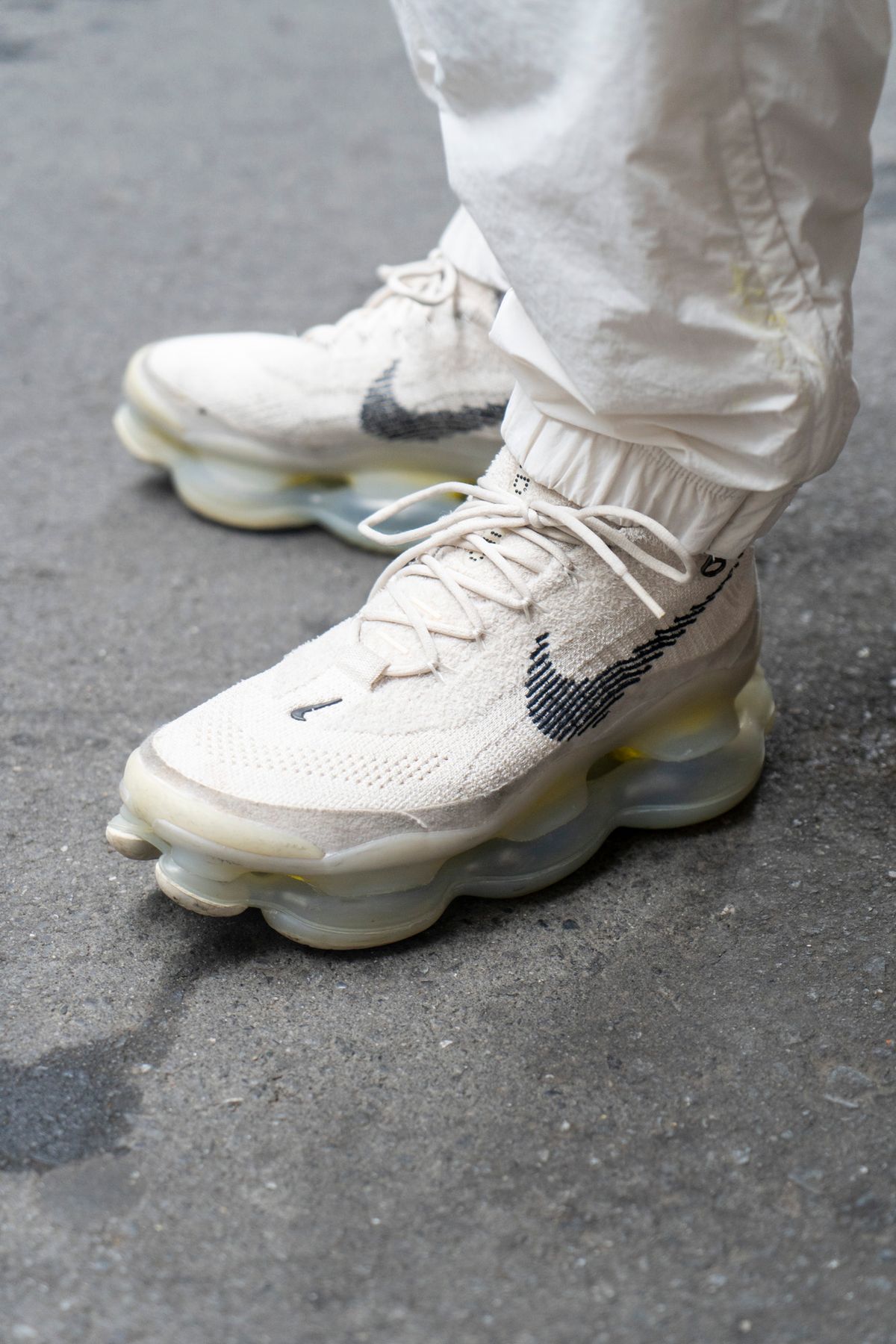 Tシャツ=ノーブランド パンツ、シューズ=ともにナイキ 帽子=ノーブランド 眼鏡=オークリー バッグ=サカイ ネックレス=不明