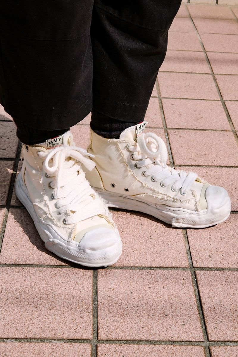 シャツ=グラフペーパー パンツ=コムデギャルソン スニーカー=メゾンミハラヤスヒロ 帽子=ナインテーラー サングラス=エーディーエスアール バッグ=ポーター
