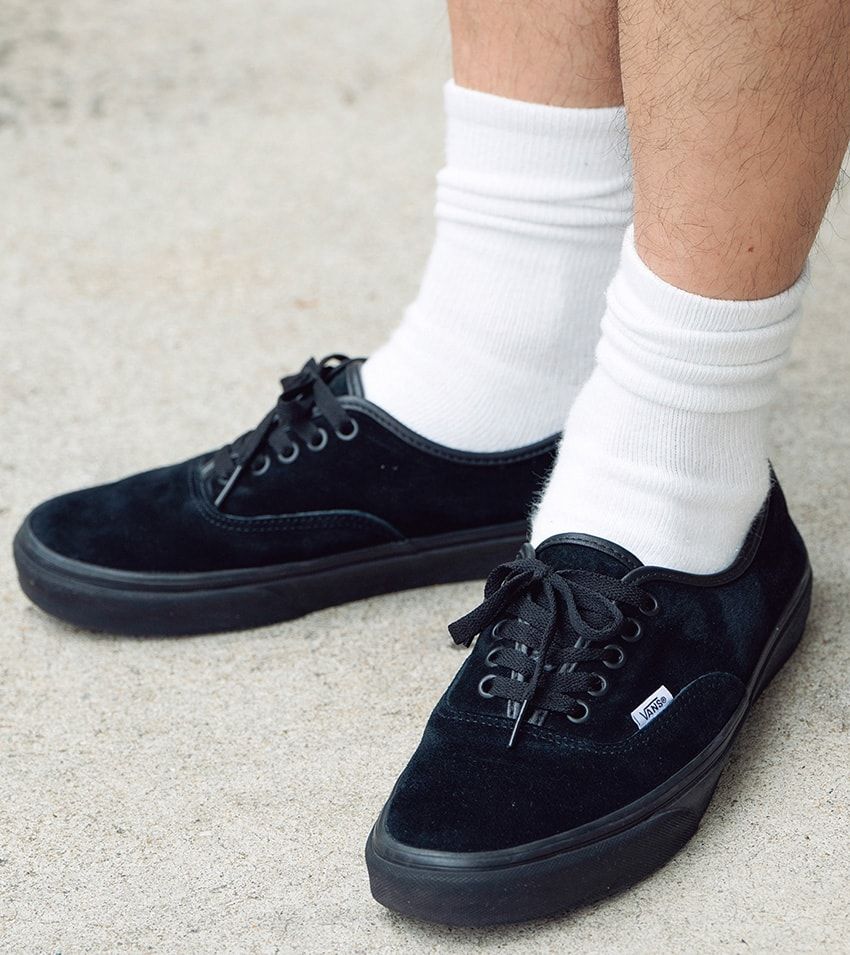 Tシャツやソックスで白を挿して軽さを出しつつも、「柄シャツには、ニットキャップやシューズといった小物を黒で統一するのが年齢的にちょうどいい」。