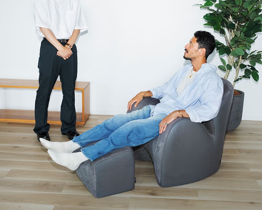 「使用感はもちろん、ちょっと近未来的な雰囲気もあるモードな見た目も気に入りました。横幅は少しコンパクトめで、男女+子供ひとりで座るくらいが僕的にはしっくりきますね」と素直な感想を口にしつつ、こう続けた。