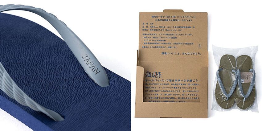湘南ビーサンを入れる箱もFSC認証紙のものです。安いものを探せば、今の半分以下のコストになるのですが、一貫してこだわった資材を用い、パートナー企業である海と日本プロジェクト仕様の箱に入れています。箱には環境に配慮されたものであるという文章が書かれているので、手に取ってくださった方は、ぜひご覧ください」。