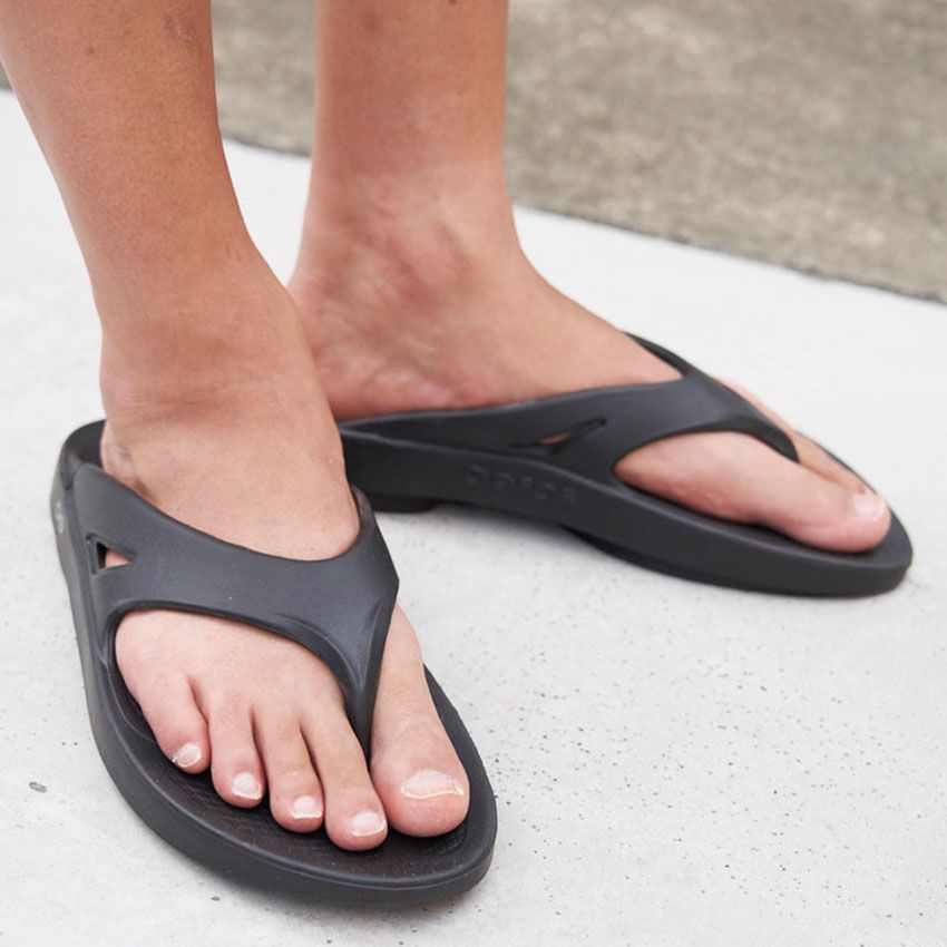 たとえば後藤さんのように全身を黒でまとめるだけで、コンクリートジャングルにもすっと馴染むスタイルに。足元に選んだのはブラジル発のフットウェアブランド「ハワイアナス」の一足。抜け感はそのままに、黒特有の都会的なムードが漂う。