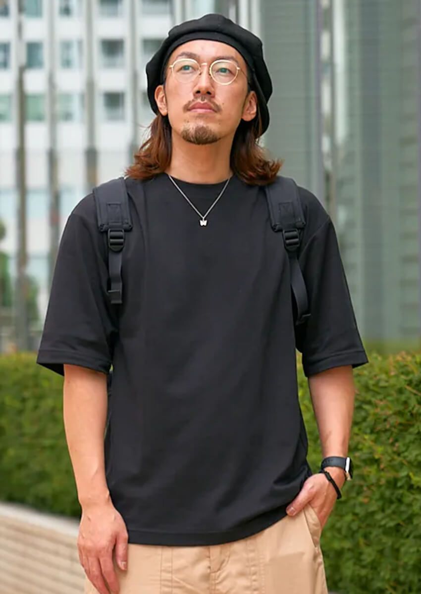 【写真9点】「トップスはユニクロ ユーの黒をチョイス」の詳細を写真でチェック① 個性派パンツも余裕で受け止める万能T