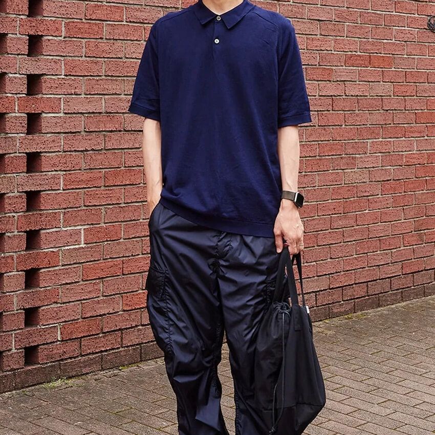 Tシャツ以上、シャツ未満。そんな感覚で、きちんと感を簡単に演出できるのがポロシャツの旨みだ。OCEANSとしてはやはり、“ネイビー“をプッシュしたい。それも、彼らのようにワントーンコーデを実践できれば、ラクに、自然的に決まる。