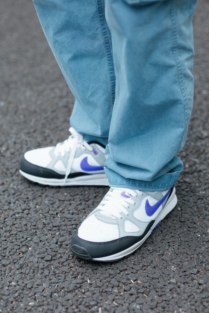 逞しい身体に寄り添うジャストサイズ、あえて紫でハズしたナイキのチョイスも好印象。ん? “パープルレーベル”のパンツとのコンビだとすると、ハズしではなく“揃え”か?
