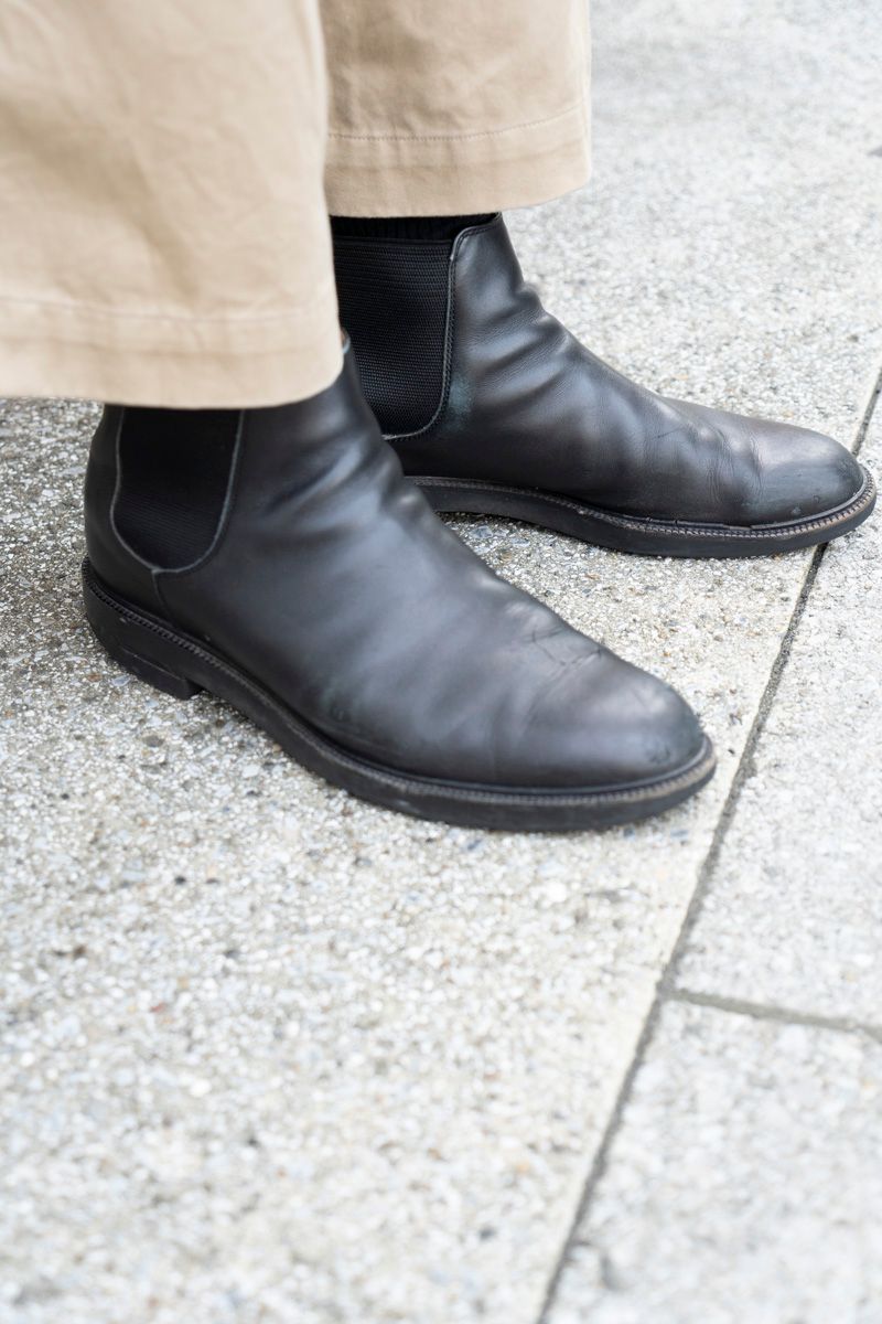 ▶︎矢本さんのスナップをすべて見る矢本亮太さん(31歳)古着のボーダーTが持つ、なんとも言えない風合い。それを活かすには、シルエットや小物で遊ぶのが正解だ。