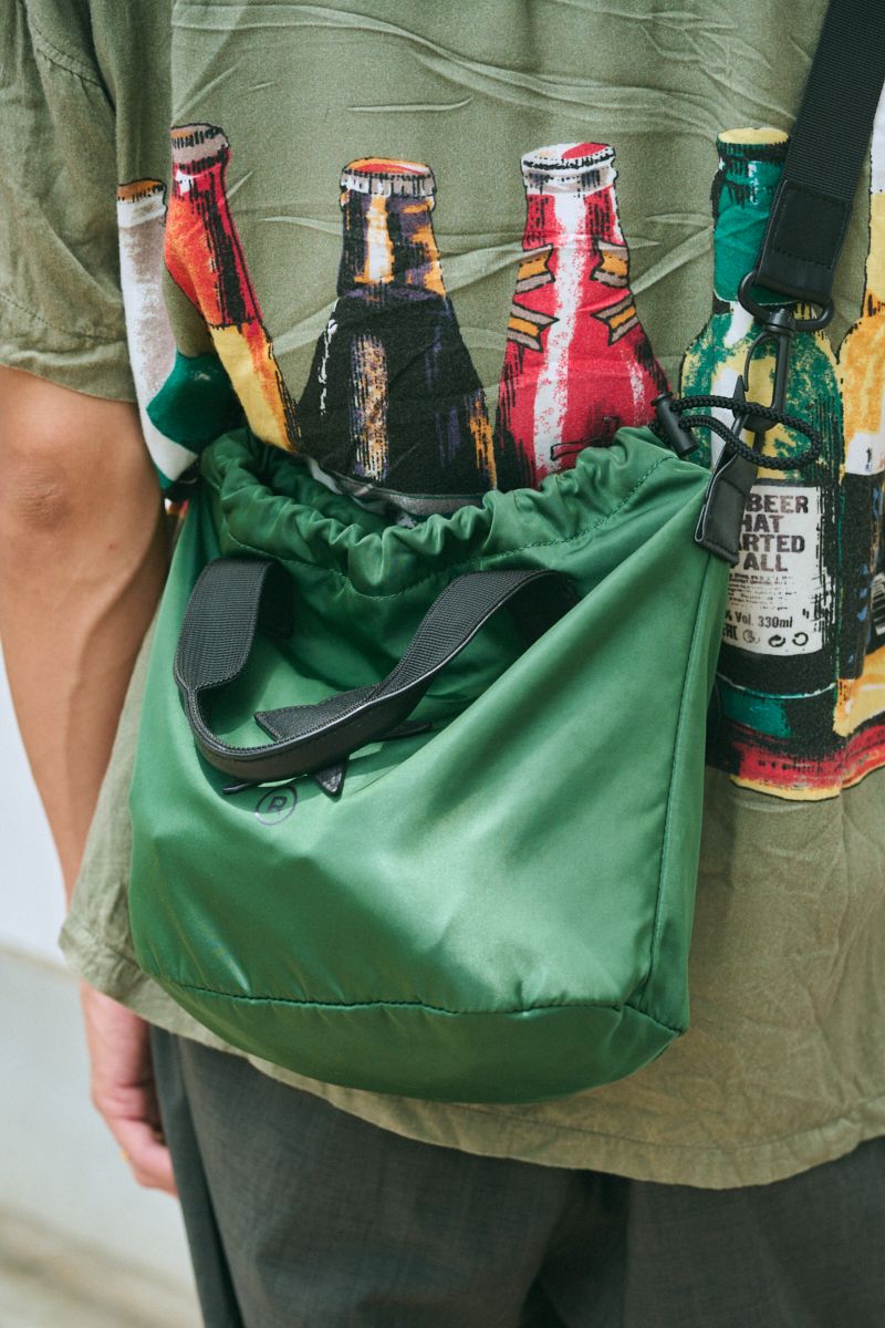 カーキカラーの深みがグレーの懐にすっぽりと収まり、多色フォトがいい塩梅のアクセントに。シャツとバッグの色味を同系色で揃え、全体をまとめて魅せた手腕にも注目。