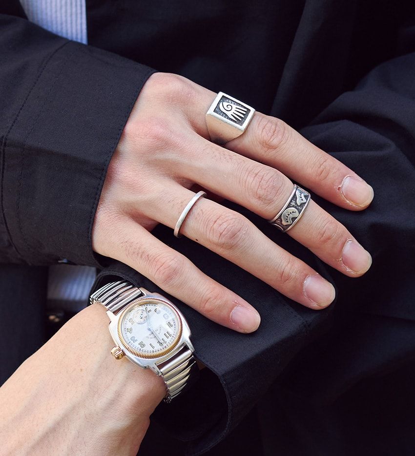 平本夏偉さん / 30歳ブラックカルチャーへのオマージュを感じさせるようなボックスシャツ全開のスタイル。