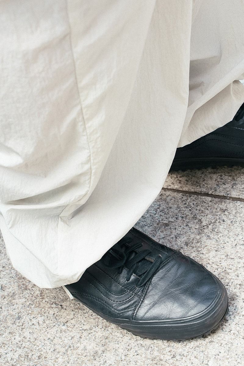 ▶︎北島さんのスナップをすべて見る北島豪士さん(34歳)トップスは黒の無地T、配色は黒と白。これだけ聞くと至極シンプルに思えるかもしれないが、ご覧のとおり、北島さんの装いは実にセンスフルだ。