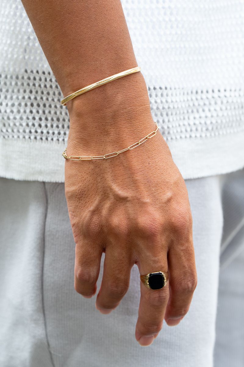 やや上級者向けの組み合わせだが、ゆうまさんのように上下を白で統一すれば、大人の清潔感もしっかり確保できる。男らしいリングで自分らしいアクセントを加えているのも好印象!