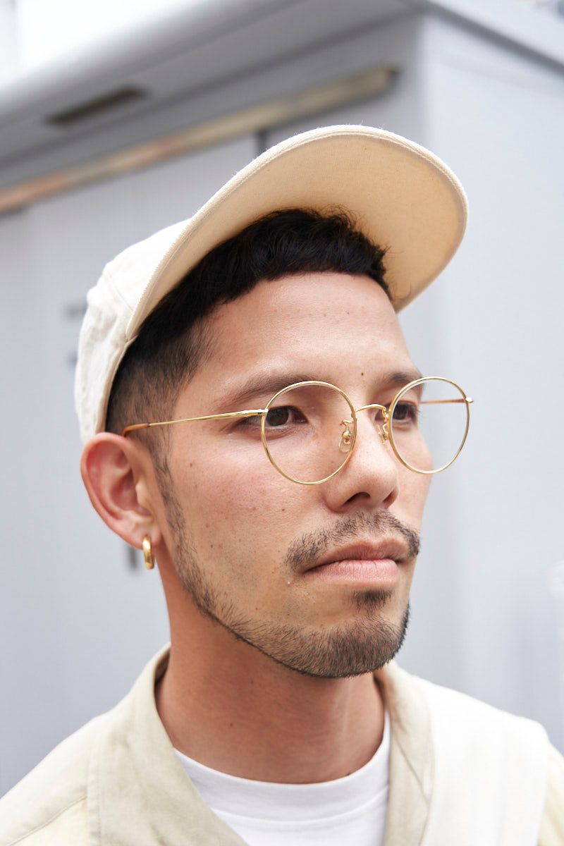 シャツ、ピアス、ブレスレッド、リング=すべて古着 パンツ=エイチビューティーアンドユース シューズ=パラブーツ 帽子=ジャックムス 眼鏡=白山眼鏡店 バッグ=ヨロズ 腕時計=アップル