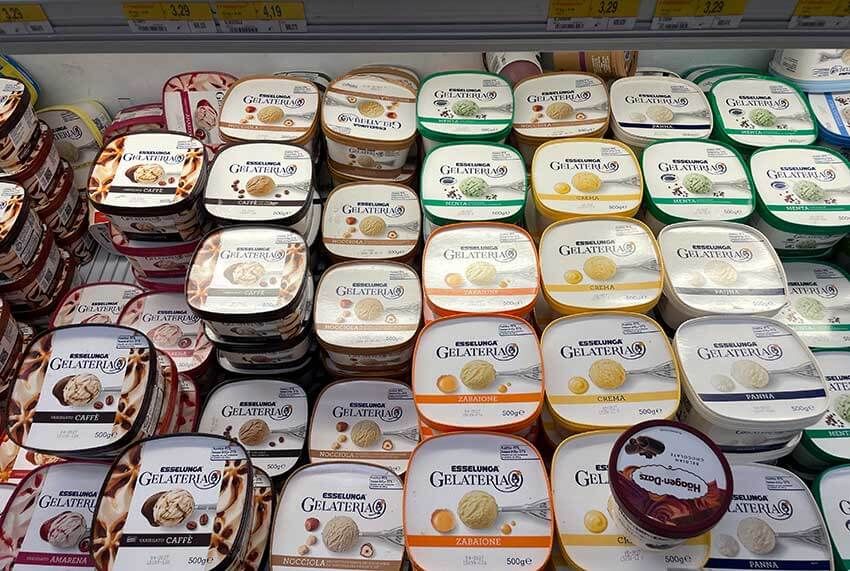 イタリアのスーパーに行くと、さまざまな冷凍デザートが並んでいる。その中で、多くの家庭で食べられているのは、日本で言う「カップアイス」や「箱入りアイス」に近いものだ。これらは、工業的に生産されてジェラートのように毎日手作りされるものではない。味のバリエーションも豊富で、子供から大人まで楽しめる定番のフレーバーが揃っている。