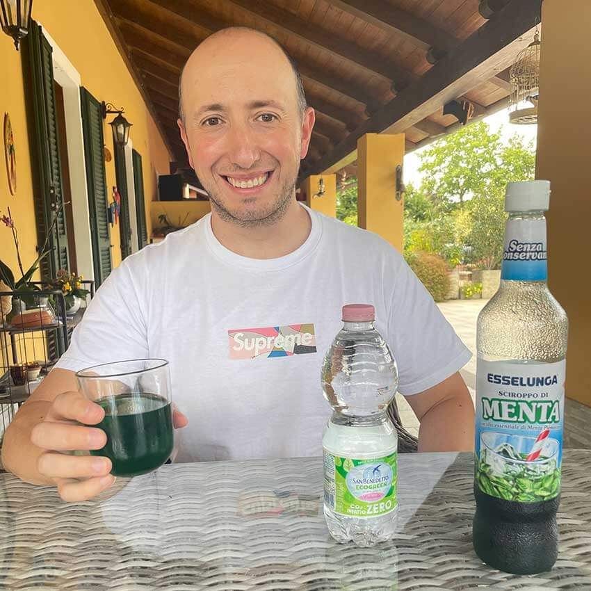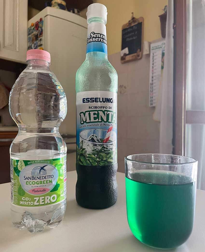 Acqua e Menta):水とミントシロップを混ぜたシンプルな飲み物だけど、これがイタリアの家庭やバールで意外と人気がある。清涼感があって暑い日にぴったり。