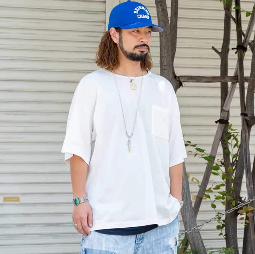 ▶豊島さんのスナップをすべて見る豊島慎一郎さん(31歳)爽やかさすら感じるライトブルーデニムはリメイク風のデザインとワイドテーパードシルエットが印象に残る。バランスを取るように着用した白いTシャツも身幅・丈感ともにゆったり。これだけ強い主張がある装いなら、スニーカーも個性的なものを身に着けるくらいがちょうどよし!