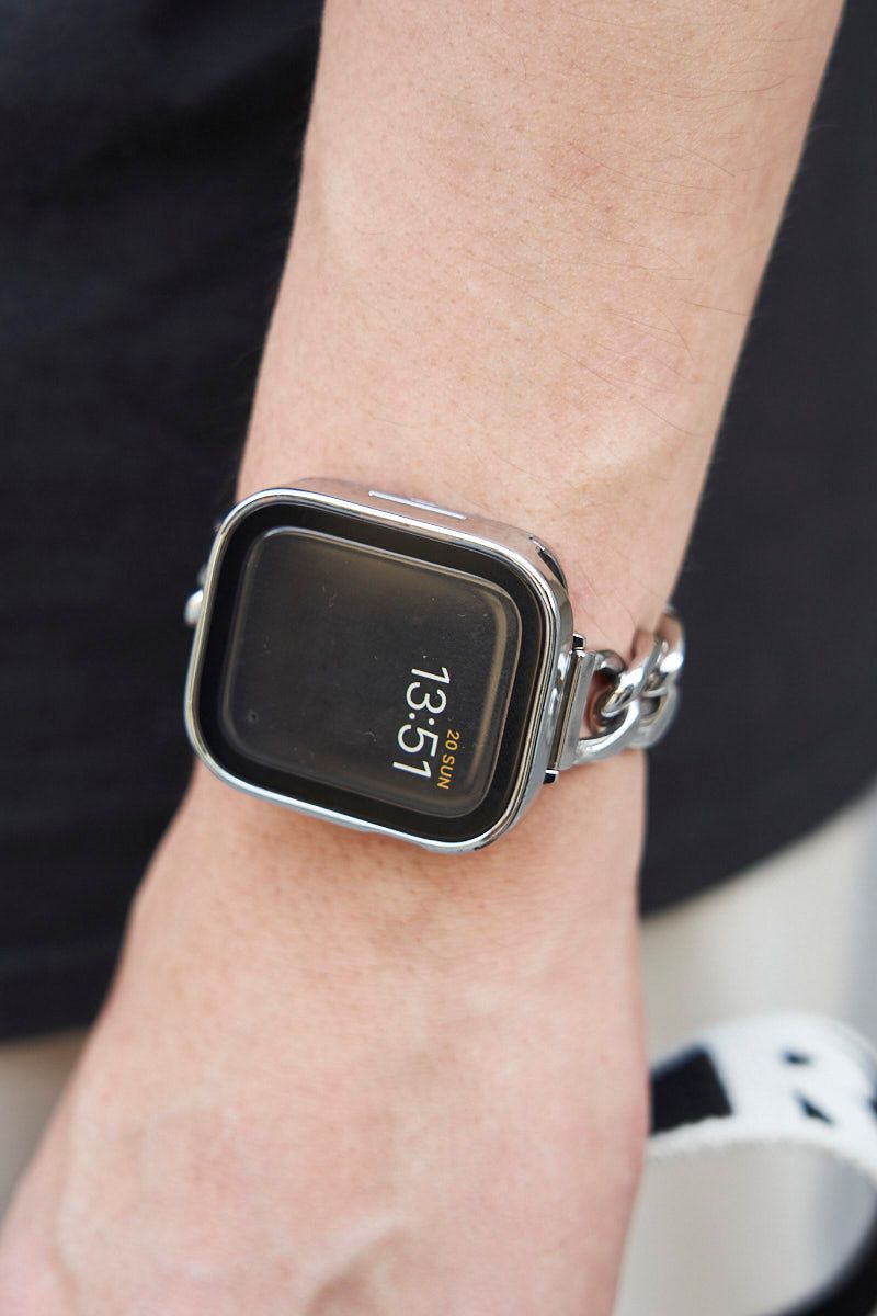 Tシャツ、帽子=ともに古着 パンツ=メゾンスペシャル シューズ=コンバース 眼鏡=ブラン バッグ=マルニ 腕時計=アップル ブレスレット、リング=ともに不明